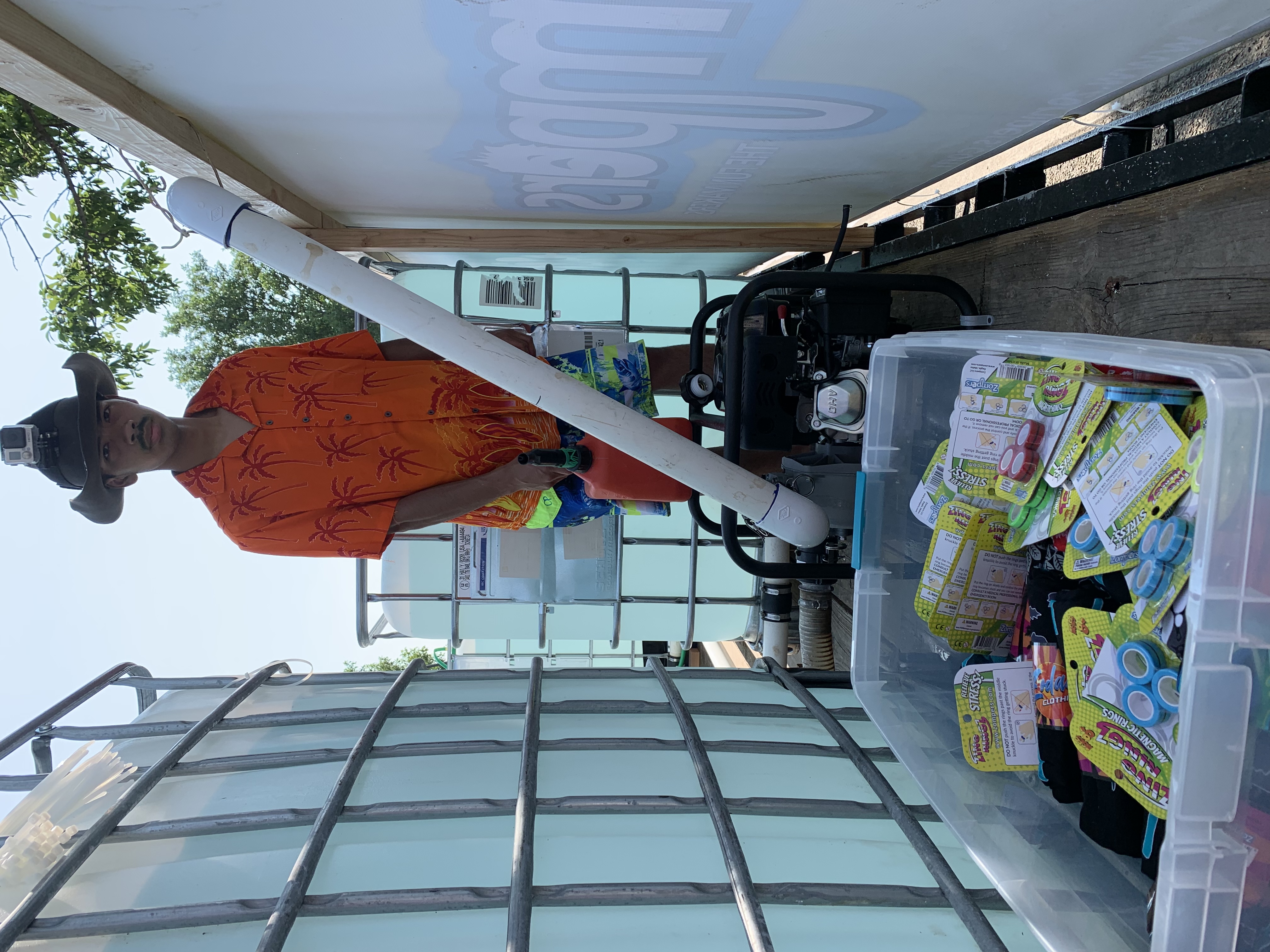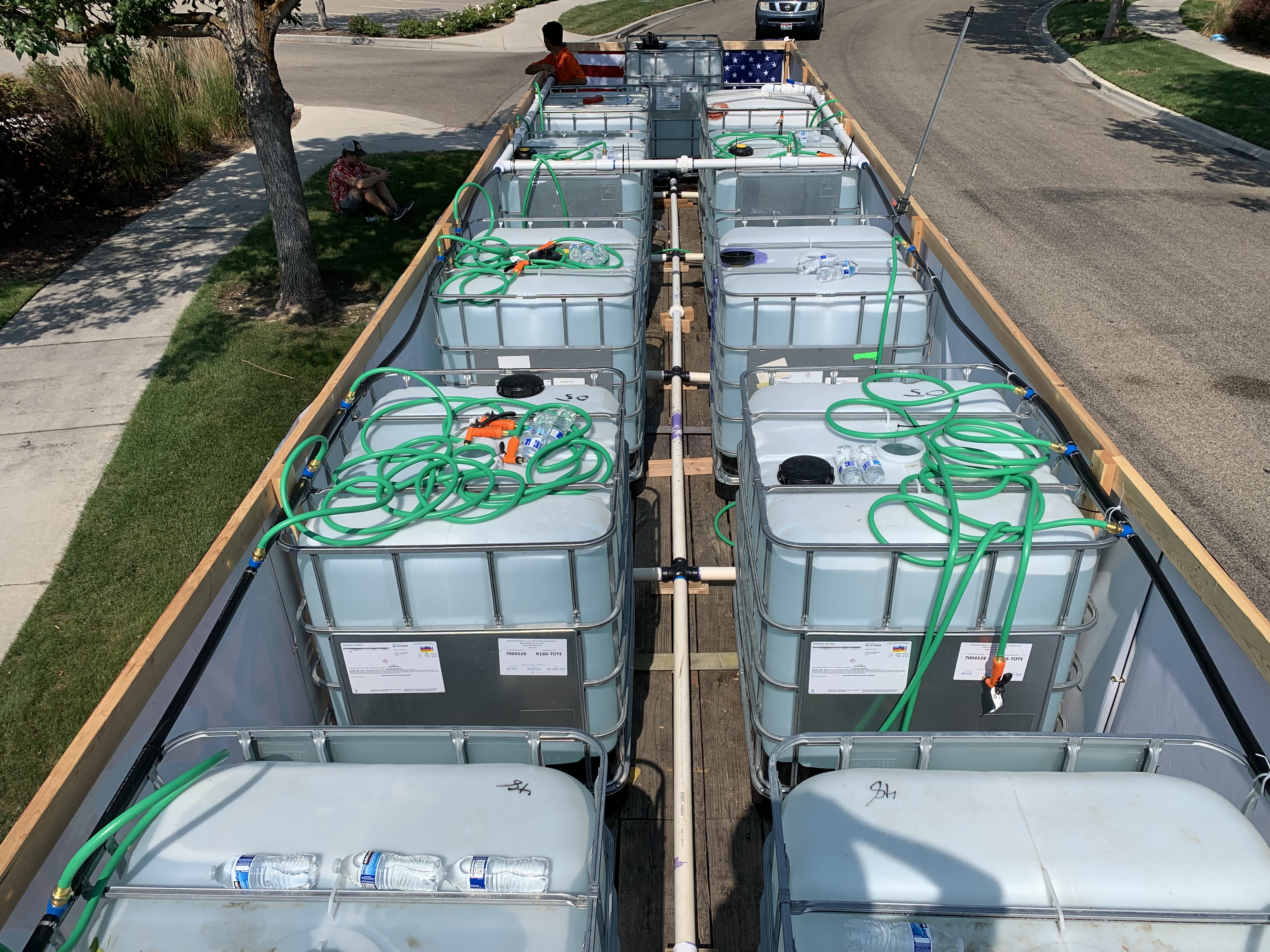 When 2021 came around Kevin bought a 40 ft flatbed trailer, 10- 300gal and 1- 400gal tanks (we weren't going to run out of water this year) and plenty of piping. This was going to be the biggest float for the parade. It was also a neat way for Kevin to advertise in company brands.